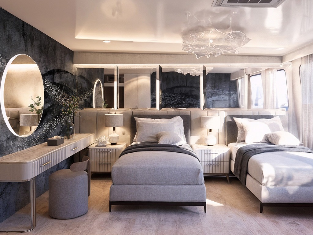 Monique integrates sustainable technologies such as solar panels and lithium battery systems - minimizing its environmental impact while upholding the standards of luxury cruising. Guests benefit from premium logistics and smooth sailing, with every element designed for both efficiency and indulgence.